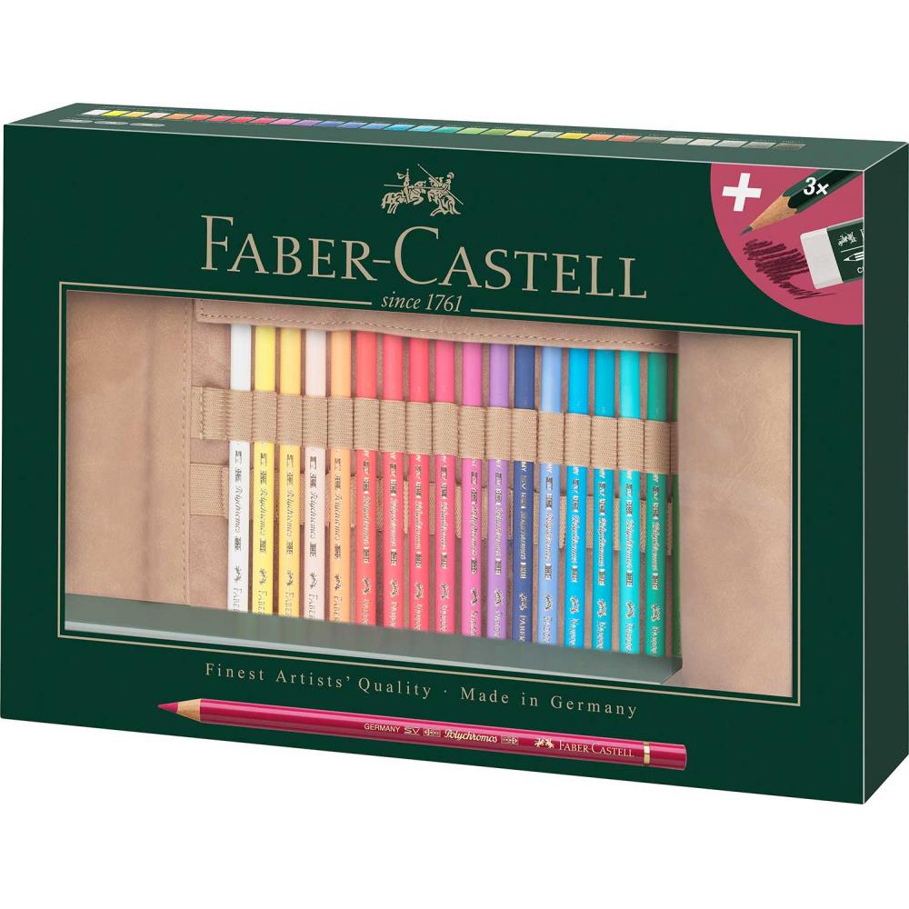- 30 različnih barv + 3x grafitni svinčnik trdote HB, 2B, 8B in radirka.