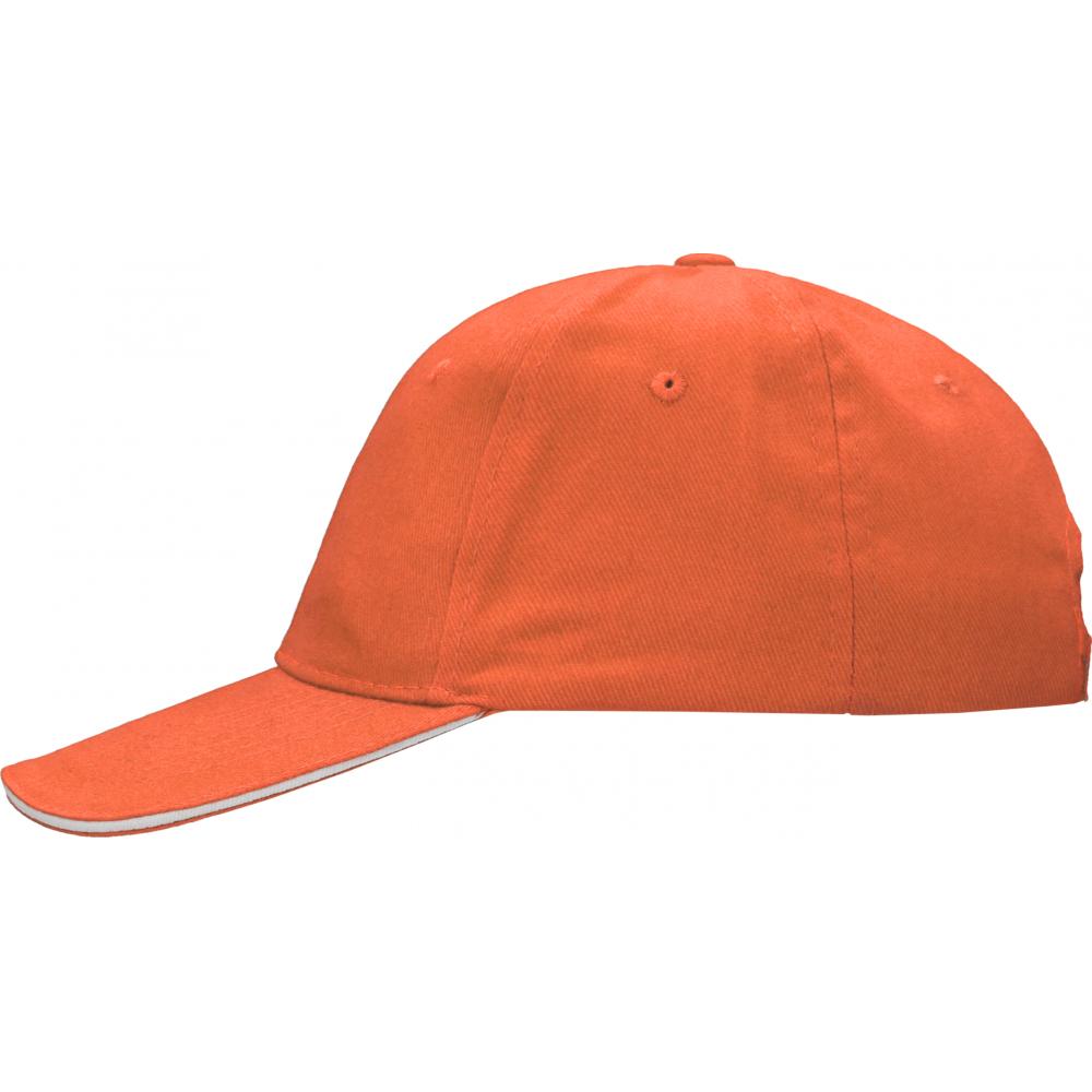 Kapa Sandwich, 100% bombaž z nastavljivo kovinsko zaponko v oranžni barvi.